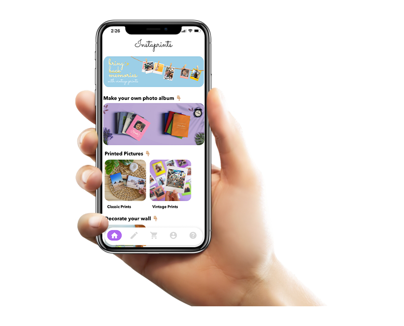 Instaprints is Egypt’s #1 mobile application to print your photos directly from your phone. You can choose your pictures from your phone’s gallery, Facebook or Instagram and in a few clicks you can transform them into photo albums or pictures like the old days (and even polaroids!) or photo tiles to decorate your home. The pictures are printed in our specialized labs and delivered directly to your door.